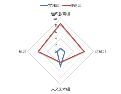 人文艺术组人均实践课听课次数大于理论课,其余三组均是理论课听课次数远远多于实践课(如图3所示),说明我们对实践教学质量的监控不够。(注:由于各组人数相差较多,每组听课量差别大,故此处用人均听课数来说明问题。)