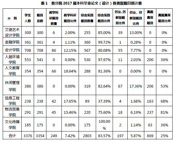 各分院 2017届毕业论文(设计)应用型题目总体情况统计见下表: