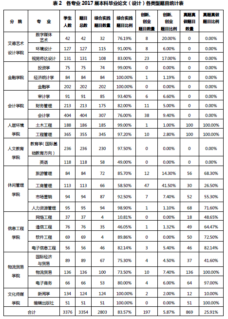 注:数据来源于各分院2017届本科毕业论文(设计)自查表